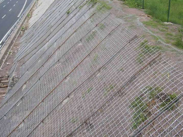 產品特性:作用原理上類似于噴錨和土釘墻等面層護坡體系,但因其柔性特征能使系統將局部集中荷載向四周均材質:鋼絲繩網、普通鋼絲格柵(常稱鐵絲格柵)和TECCO高強度鋼絲格柵勻傳遞以充分發揮整個系統的防護能力,即局部受載,整體作用,從而使系統能承受較大的荷載并降低單根錨桿的錨固力要求。
