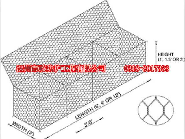 格賓防護工程是一種將蜂巢形格賓網片組裝成箱籠又叫格賓擋墻,并裝入塊石等填充料后,用作護岸的新技術,按結構形式可分為擋墻、護坡、護底、護腳、水下拋石等。由于構成蜂巢格網防護體的鋼絲具有一定的抗拉強度,不易被拉斷,填充料之間又充滿了空隙,具有一定的適應變形的能力。當地基情況發生變化時,如發生不均勻沉降、地震等,箱內填充料受箱籠的約束不會跑到箱籠外,而會自行調整形成新的平衡;又因箱籠系柔性結構,因此,防護工程表面可能會發生小的變異,但不會發生裂縫、網箱被拉斷從而造成防護體被破壞的現象。