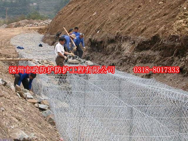 6、用作拋石籠的格賓網(wǎng)箱或網(wǎng)箱組,制作程序應(yīng)按每層格賓網(wǎng)箱的施工步驟進(jìn)行。