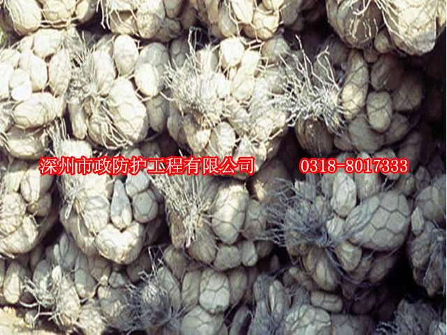 深州市政防護石籠網袋是由機械編織的雙絞合六角形金屬網制作而成的袋狀物,符合ASTMA975-97標準。
